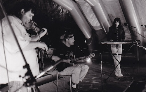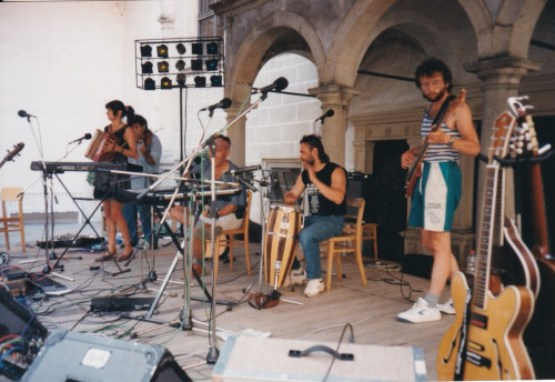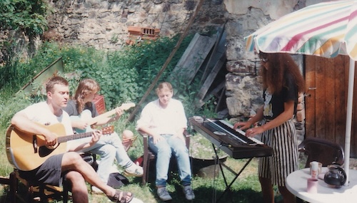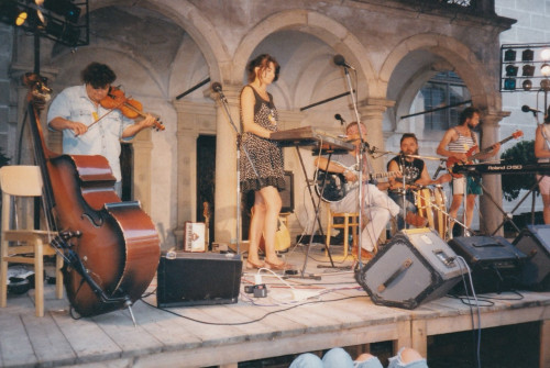 Po vydání desky Rozpad kolonií pokračovala Bonsai v hraní v komornějším složení s houslistou Slávkem Formanem, na fotce dole jedno z posledních Františkových vystoupení, Muzika v Hrádku u Rokycan v srpnu 1998.